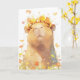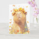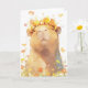 Esta carta acolhedora apresenta uma serena capybara vestindo uma coroa de flores brancas, rodeada por um conjunto ensolarado de flores vibrantes. As cores suaves e pastéis e a expressão deliciosa trazem um senso de alegria e tranquilidade, capturando o espírito gentil da capybara. Perfeito para amantes da natureza e entusiastas dos animais, esta ilustração adorável adiciona um toque alegre a qualquer ocasião. Envie este cartão para compartilhar sorrisos e calor, fazer-o ideal para aniversários, notas obrigados, ou simplesmente iluminar o dia de alguém.
