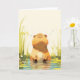 Esta adorável carta de saudação apresenta uma ilustração encantadora de uma capybara em pé pacificamente em água rasa, sua face erguida num sorriso blissmo. Cercado por verde macio e mudo, esta caprichosa caibara cômica exude uma serena, feliz vibração, perfeita para trazer alegria e calma a quem a receber. Ideal para amantes de os animais e fãs de capybara, esta carta captura um momento lúdico mas calmo na natureza. A design minimalista e as cores suaves tornam-na adequada para uma ampla gama de ocasiões, desde aniversários a momentos justos, acrescentando um toque de tranquilidade da natureza a qualquer mensagem.