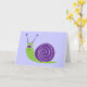 Caracol roxo e verde adorável com um olhar bonito no rosto.