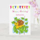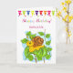 Cartão de aniversário com caracol engraçado fofo, balões coloridos e bolo de aniversário. Personalize com seu nome filho.