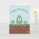Este cartão de aniversário apresenta um bobo, feliz e sorridente personagem verde de cacto espreitando sobre uma parede de tijolos. Ele também apresenta o caloroso desejo, "Feliz Aniversário!".
