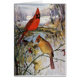 Um par de cardeais do norte (cardinalis de Cardinalis) empoleira-se em um arbusto cor-de-rosa nesta cena invernal. Uma ilustração do vintage desde 1915.