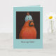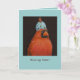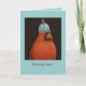 Cardeal com chapéu de ovo no cartão de lar desaparecido.