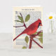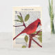 Um pássaro vermelho americano também conhecido como Cardinal está na frente e dentro à esquerda do meu cartão de saudação. A placa é dentro de vazio. Personalize com seu próprio texto.
