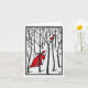 Santo Nick está caminhando pela neve, vigiado por um cardeal.