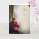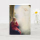 Vintage painting of Mary with hands clasped. The angel of the Lord speaks with her from the archway to her home. Fine art by Danish painter Carl Bloch.