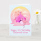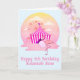 Carnaval do Friso Flamingo Kids 5, cartão de saudação de aniversário para seus pequenos especiais. Meninas de todas as idades vão adorar esta cena fofinha com um doce rosado de algodão rosa-rosa comendo flamingo fora da feira, com passeios no parque de diversões ao fundo. Texto personalizado na frente e no dentro para que você possa personalizá-lo da maneira que quiser.