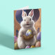 Cartão Carregar de coelhinho branco-doce e ovo de páscoa