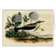 Pintura do vintage de um Stonechat ou de uma carriça americana. Pássaro cinzento pequeno bonito em um fundo do sudoeste com os hydrangeas roxos empoeirados. Ilustrado na era do Victorian, em 1862 pelo artista e pelo ornithologist John Cassin do americano.