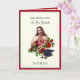 Com um belo Cartão de Graduação Católico desenhado por costume com o Sagrado Coração de Jesus, rosas vermelhas, bonés de formatura e diploma.