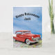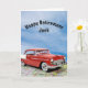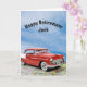 O velho carro vermelho e branco num roteiro para a aposentadoria geral. Todo texto é editável.