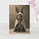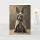 Este cartão mostra uma pequena e misteriosa criatura parecida com um coelho centrada contra um fundo de tom único suavemente sombreado, olhando diretamente para a frente com um olhar gentil e convidativo 🐰. Suas orelhas grandes e eretas sobressaem de um simples manto com capuz, dando-lhe uma presença tímida e encantadora, como se estivesse compartilhando silenciosamente um momento com alguém próximo. O rosto é emoldurado pelo capuz, com grandes olhos brilhantes, um narizinho e bigodes finos que sugerem uma curiosidade terna, como um olhar amigável mantido um pouco mais do que o habitual. Tons sepia quentes envolvem a cena, e uma luz suave ilumina o tecido do manto, mostrando dobras sutis e uma textura macia. Uma curta saudação está perto do topo em letras miúdas e claras, enquanto uma segunda linha de texto repousa perto da parte inferior em um tom ligeiramente mais escuro para contraste 🌷. Sob a barra do manto, pequenos dedos esguios aparecem, repousando como se