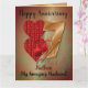 Cartão de saudação personalizado do Tema do 7 de Casamento de Sete Anos de cobre e Lã para o seu marido. Design de cartão de aniversário personalizado com nome e data.