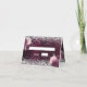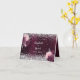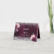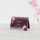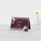 Decorado com flores em burgundy e rosa, falso confete prateado. Um fundo de gradiente arrojado. Personalize e seus nomes e a data do casamento. Os nomes são escritos com uma escrita estilo moderna e elegante, escrita à mão. Voltar: espaço para você escrever manualmente o nome dos seus convidados e o número da tabela. Dentro de fundo da Borgonha: cor burgundy.