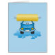 Um carro azul sorridente lavando-se com pincel de lavagem de roupa.
