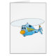 Um helicóptero de animação azul balbucioso voando no céu amigável.