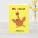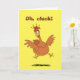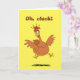 Este cartão de parabéns engraçado é perfeito para um homem ou mulher mais velho, especialmente se ele ou ela ama galinhas. Tem uma galinha de desenho animado parecendo surpresa e diz "Oh cluck!" na capa.