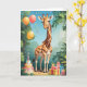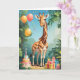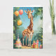 Cartão Cartoon Girafa com Balões e Bolo| Card