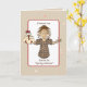 Quer um cartão que a faça rir em voz alta? Este desenho feminino segurando uma galinha é tão engraçado!