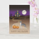 Cartão Casa Assombrada De Azul E Branco E Halloween