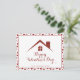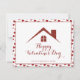 Deseje aos seus clientes de imóveis um "Feliz Dia dos Namorados" com este cartão postal de marketing personalizável com uma casa brilhante vermelha e uma borda vermelha de Dia dos Namorados.