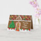 Envie a doçura da estação aos seus amigos, familiares ou clientes com este charmoso cartão de férias da casa de pão de gengibre. O dentro apresenta uma saudação personalizada e imagens de doces e biscoitos. Todos os campos são perfeitamente personalizáveis para dizer exatamente o que você quer. Digite seu nome ou número acima da porta, adicione sua própria saudação e personalize com uma assinatura impressa ou exclua para assinar você mesmo.