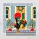 Cartão Casa portuguesa de Natal com Cumprimentos do Galo