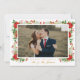 Este Primeiro Cartão de Férias de Natal é uma bela maneira de celebrar seu primeiro Natal como Sr. e Sra. Com uma foto favorita emoldurada por sotaques botânicos vermelhos e verdes festivos e caligrafia elegante, ela combina feliz e charme de feriado brilhante com eterno novo estilo. Perfeito para compartilhar com familiares e amigos, este cartão torna sua primeira temporada de festas muito especial.