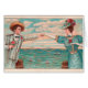Amor na praia! Esta imagem de vintage é baseada num antigo cartão postal com um homem e uma mulher a bater nos braços para tocar as mãos
