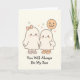 Diga "boo" da maneira mais doce. Este cartão de saudação do Dia das Bruxas apresenta dois fantasmas kawaii de mãos dadas com um balão de abóbora — pastéis macios, sorrisos gentis e um monte de vibrações confortáveis. Perfeito para parceiros, amigos, ou o garoto que ama fofo assustador.