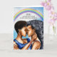 O cartão perfeito para dar a essa mulher que você chama de esposa. Duas lindíssimas mulheres de pele castanha abraçam em uma cor d'água romântica sob um arco-íris com uma pote de mensagem de ouro neste cartão de aniversário para o parceiro lésbico.