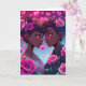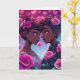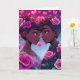 Adorável casal anime afro-americano se abraçando, cercado por corações e flores. Linda cartela de Dia dos Namorados personalizada para o casal que ama anime! Adicione sua foto e altere seu texto na área de personalização. Este cartão é para um casal lésbico negro lgbtqia+.