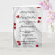 Esta linda bênção de casamento apache, que começa com "agora você não sentirá chuva ...", é feita em um cartão de felicitações, com um belo fundo prateado rodopiante com pequenos corações vermelhos. Há um exemplo de texto na parte inferior para reservar espaço para nomes personalizados e data. Que lindo cartão de aniversário, noivado ou casamento. Todos os Direitos Reservados © 2014 Alan & Marcia Socolik.