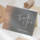 Este elegante cartões de agradecimentos de casamento moderno apresenta uma fronteira de brilho de pêssego em um fundo de cinza. O texto personalizável combina as palavras "Obrigado" em escrito branco e os nomes da noiva e do noivo em letra itálico.