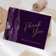 A borda esquerda deste elegante obrigado de casamento plano... você tem uma design de agata de cor-d-água roxa, aparada com brilho dourado. O texto está em um script dourado e sans serif fonts em um plano de fundo.