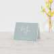 Este elegante e moderado cartões de agradecimentos de casamento minimalista apresenta um roteiro de letra na moda em branco num fundo verde de vidro marinho. Adicione os nomes dos casais e a data do casamento na fonte sans serif.