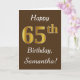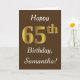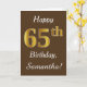 Cartão Castanho, Faux Dourado 65.º Aniversário + Nome Per
