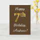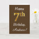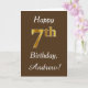 Cartão Castanho, Faux Dourado 7 Aniversário + Nome Person
