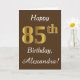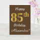 Cartão Castanho, Faux Dourado 85º aniversário + Nome Pers