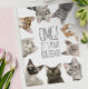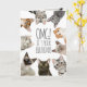 Cartão de aniversário bonito com vários gatos fofinhos olhando para você de cima. Saudações de excelente aniversário para qualquer idade, porque todos adoram gatos. Dentro é um close de uma adorável cara de gatinho com o versículo Feliz Aniversário em roteiro branco.