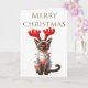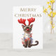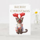 Este Cartão de Natal Engraçado e Engraçado apresenta um Gato Misquioso Bonito. Este Gato Whimsical tem um Grande Nariz Vermelho Rudolph, Deer Antlers, e está enredado em Luzes de Natal. Perfeito para os gatas que apreciam um pouco de perdão de férias! Este Cartão de Gato Xmas tem um Verso Engraçado no dentro. Personalize este cartão de Natal para o seu conteúdo!