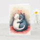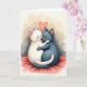 This Valentine's Day card shows two cats cuddling close on a salmon-pink cushion. One cat is bright white, and the other is a calm blue-gray, and they’re wrapped around each other like a hug. Both have their eyes closed with small smiles and a light pink blush on their cheeks, which makes the moment feel sweet and caring. A simple pink heart floats above them to underline the love in the scene ❤️. The background is a soft cream color with faint gray and beige cloud-like shapes that keep the focus on the cats. There isn’t any text on the front, so the artwork stands on its own and leaves plenty of room for your message inside 💌🍫. It’s a warm, gentle choice for sharing Valentine's Day sentiments with someone you care about.