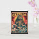 Cartão Catzilla Japonês Art Funny Cat Vintage Graphic