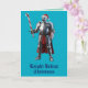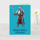 Um cavaleiro está vestindo um chapéu de Papai Noel e tem uma espada de cana doce.