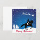 Uma bela cena de inverno com Papai Noel voando com suas renas no céu enquanto um lindo cavalo de dressage se apresenta acima da saudação "Feliz Natal". Se você gostou deste design, por favor, confira minha loja Patty's Pet Art para mais designs equestres.