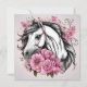 Cartão Cavalo Branco Lindo com Flores Cor-de-Rosa