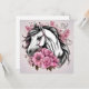 Cartão Cavalo Branco Lindo com Flores Rosa