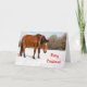 Cartão Cavalo castanho com coroa de Natal