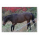 Cartão Cavalo castanho nas árvores vermelhas do outono