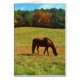 Cartão Cavalo Castanho Vermelho nas árvores do outono